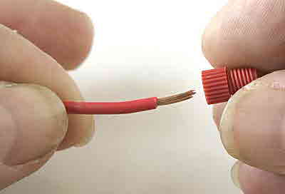 Here’s some photos of a PL1416 joining two large 12 AWG wires. I tested this connection by pulling apart as hard as I could and it held. As a bonus, the wire practically seals in the cap because its insulation size fills the opening. If your wire has extremely stiff strands this may not work.