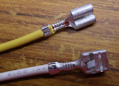 Below pic shows both sides of some .250 terminals with an Eastern Beaver crimp.