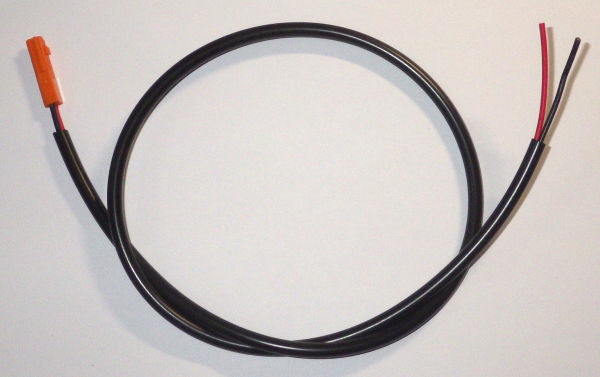 Signal or number plate light adapted cable. Connectors available in orange, blue or white. Two lengths available and with bullets or with bare wire. Use so you keep OEM connectors on the bike side when installing a tidy tail or moving indicators.
