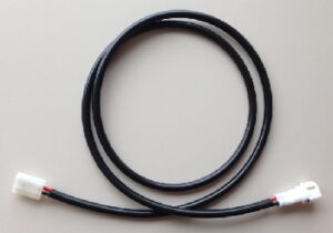This connector plugs into the stock 6P aux power connector and gives you 36” (92cm) of high temp 16 AWG wire with high temp sheathing.