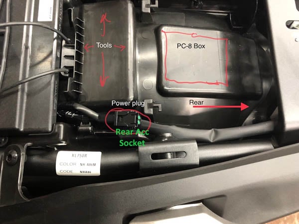 Please confirm your Xl750 has the following connector under the passenger seat, before purchasing either Acc Socket Harness. The US model has this connector.