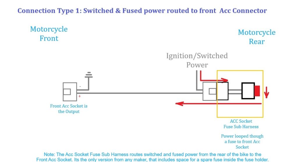 If you want to use the front ACC socket for power at the front of the bike, buy the ACC Socket Fuse Sub Harness