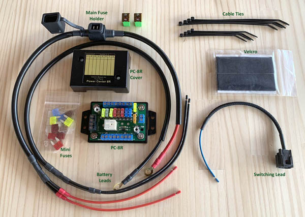 This kit mounts the PC-8R under the pillion seat, behind the tool kit. The number plate light connection is used as the switched input. Installation is very simple. Connect the battery and connect the splitter cable inline with the number plate connector. The fuse box is Canbus compatible. The PC-8 and PC-8R do no draw current when the bike is turned off, unlike electronic fuse boxes. These are the worlds most reliable motorcycle accessory fuse boxes.