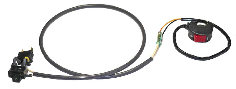 H4 Lo or Hi Beam Cut Adapter with Handlebar Switch. H4 Lo or Hi Beam cut adapter with bullet connectors, in combination with a handlebar switch. Complete unit, just plug the headlight end between one bulb and its socket, attach the switch to your bars, run and cable tie the wires and you’re all set. Includes cable ties. Handlebar switch is available separately on the Switches Page.