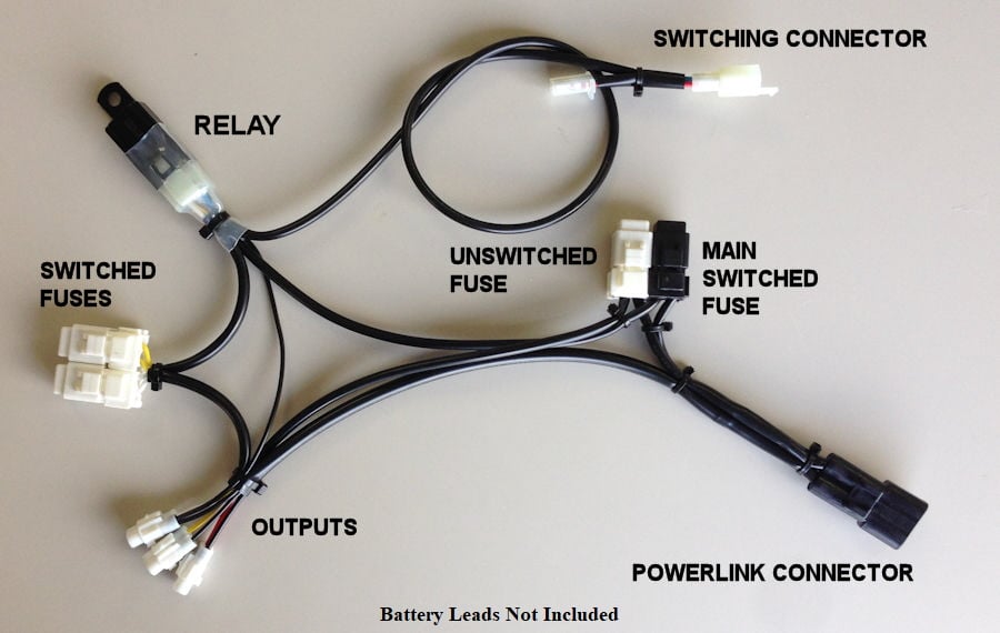 This Kit is like a small fuse panel that doesn’t take up much space. These Kits gives you 4 fused circuits, 3 switched and 1 unswitched. The components just tuck into unused spaces around the battery. These Kits can use modular sealed components like leads, splitters and more, see here.